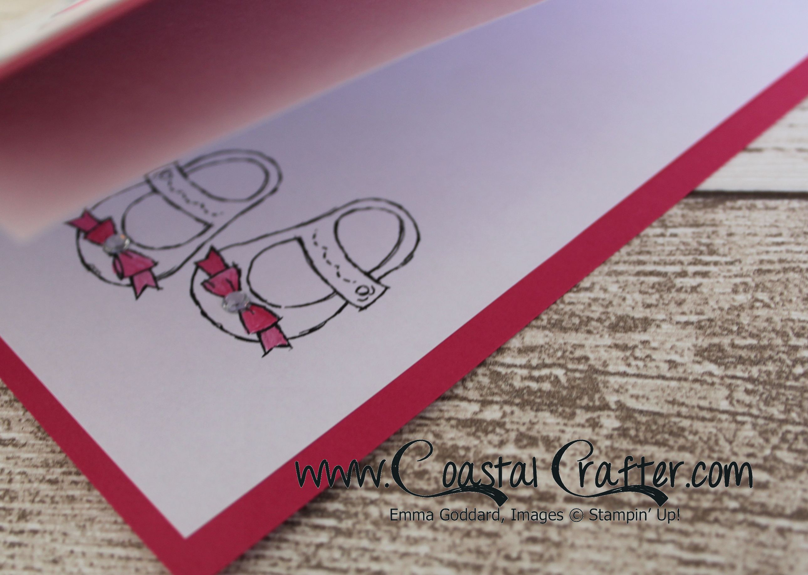 I then started a new blank A4 page in My Digital Studio (MDS) and positioned a pair of the girly shoes and printed on normal copy paper for the coordinating card insert (& a couple more gems!) …