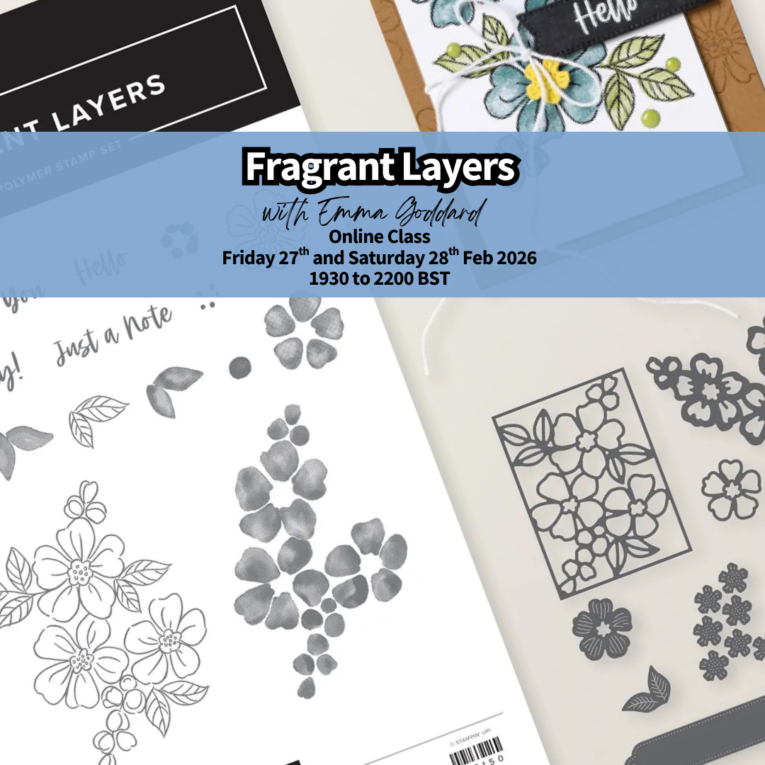 Cost includes all the consumable materials to create the class projects, a ‘table gift’ and you will have additional consumable supplies left over from the kit. Postage included. This option also includes the Fragrant Layers Bundles (rrp £52)