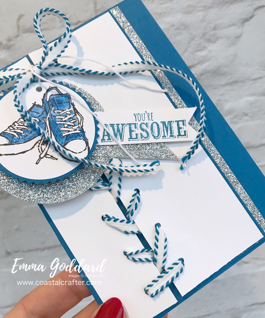 Emma, your card is truly genius!! Your choice of ribbon for the laces, making laces in the first places, oh my!! You’re never leaving the Artisan team with cards like these!!